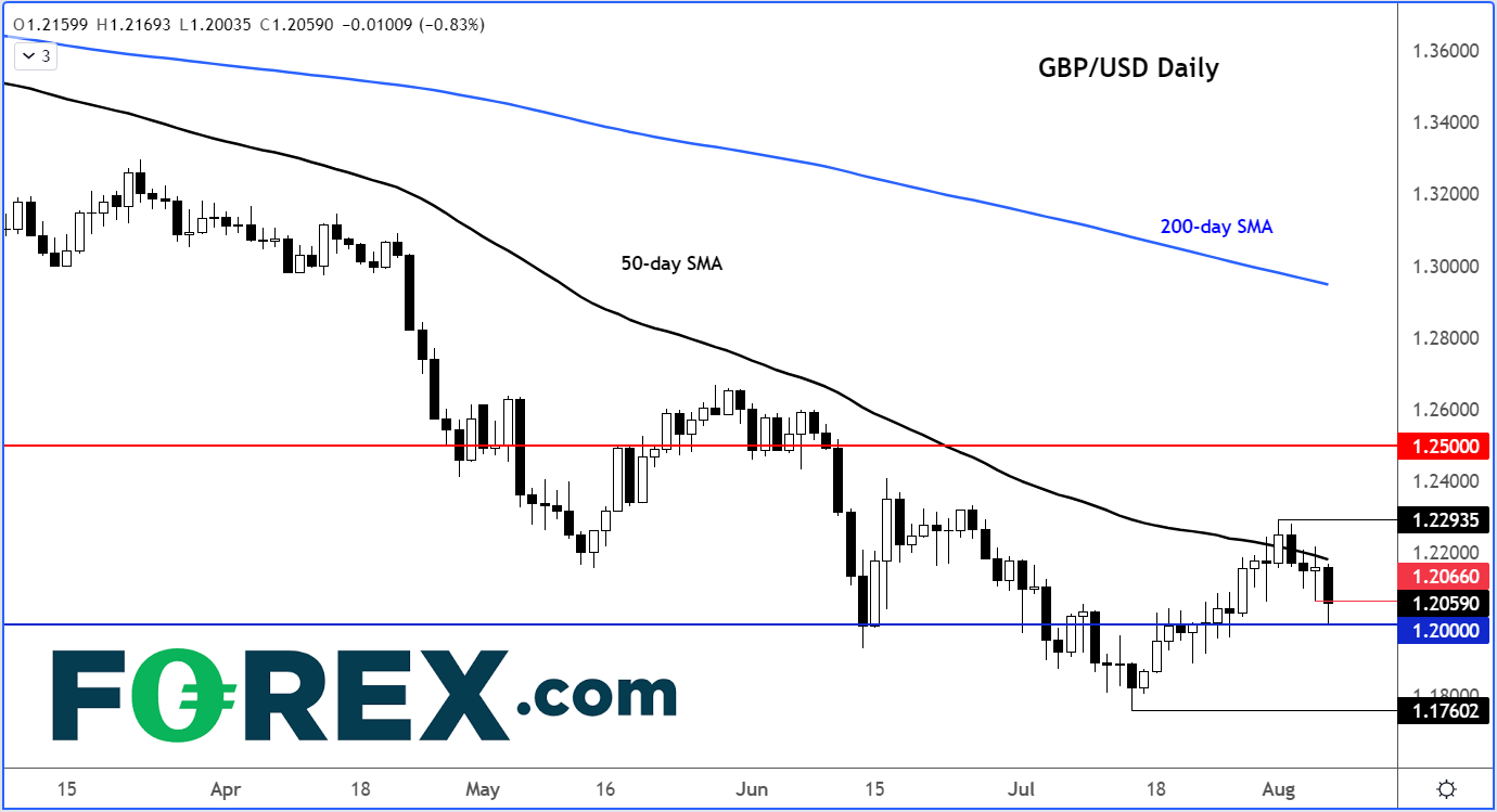 英镑/美元上周接连遭到负面消息的轰炸,先是英国央行预测经济未来5个季度负增长,而且通胀读数达到两位数,后有异常强劲的美国就业报告,再度引发美联储进一步大幅加息的担忧。但在这样的高压环境下,英镑/美元从其1.23附近的顶峰到上周五低点1.20,也才下跌了290点子左右,并不是很多。而按周图计算,英镑/美元环比跌幅只有100点子,同样不多。杀不死你的,终将使你更强大?